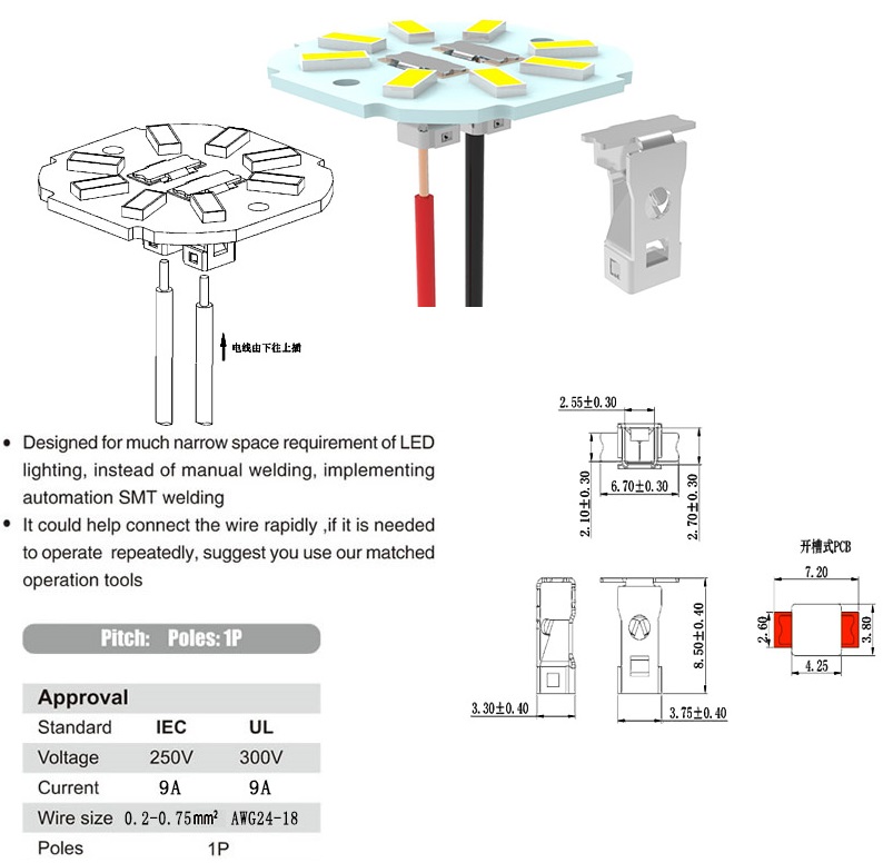 Led bulb connector,Pitch 2.5mm