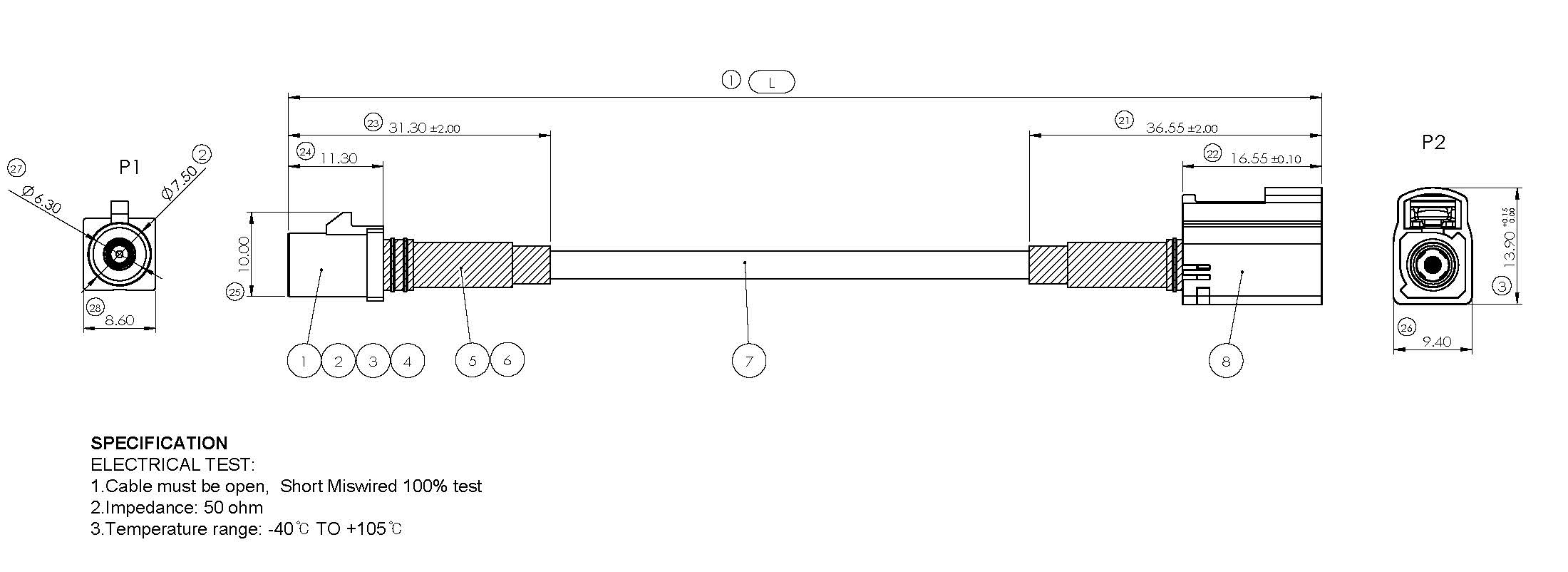 KLS1-FAKRA-CABLE-05-A/A-3-RG174-L500MM