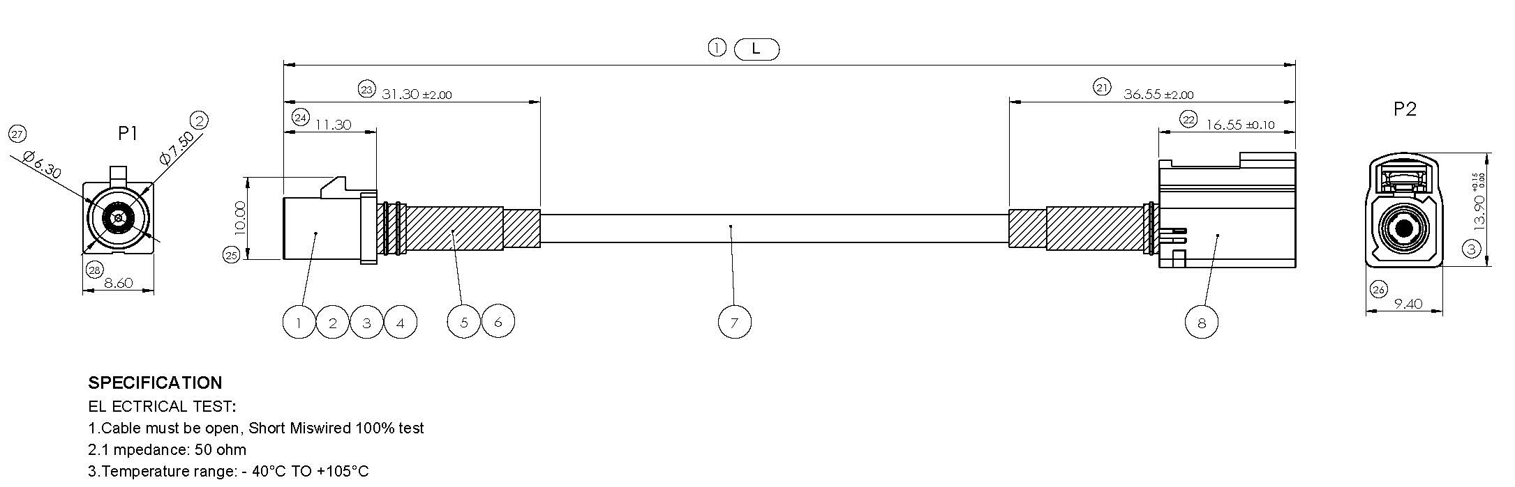 KLS1-FAKRA-CABLE-09-A/A-3-RG174-L100MM