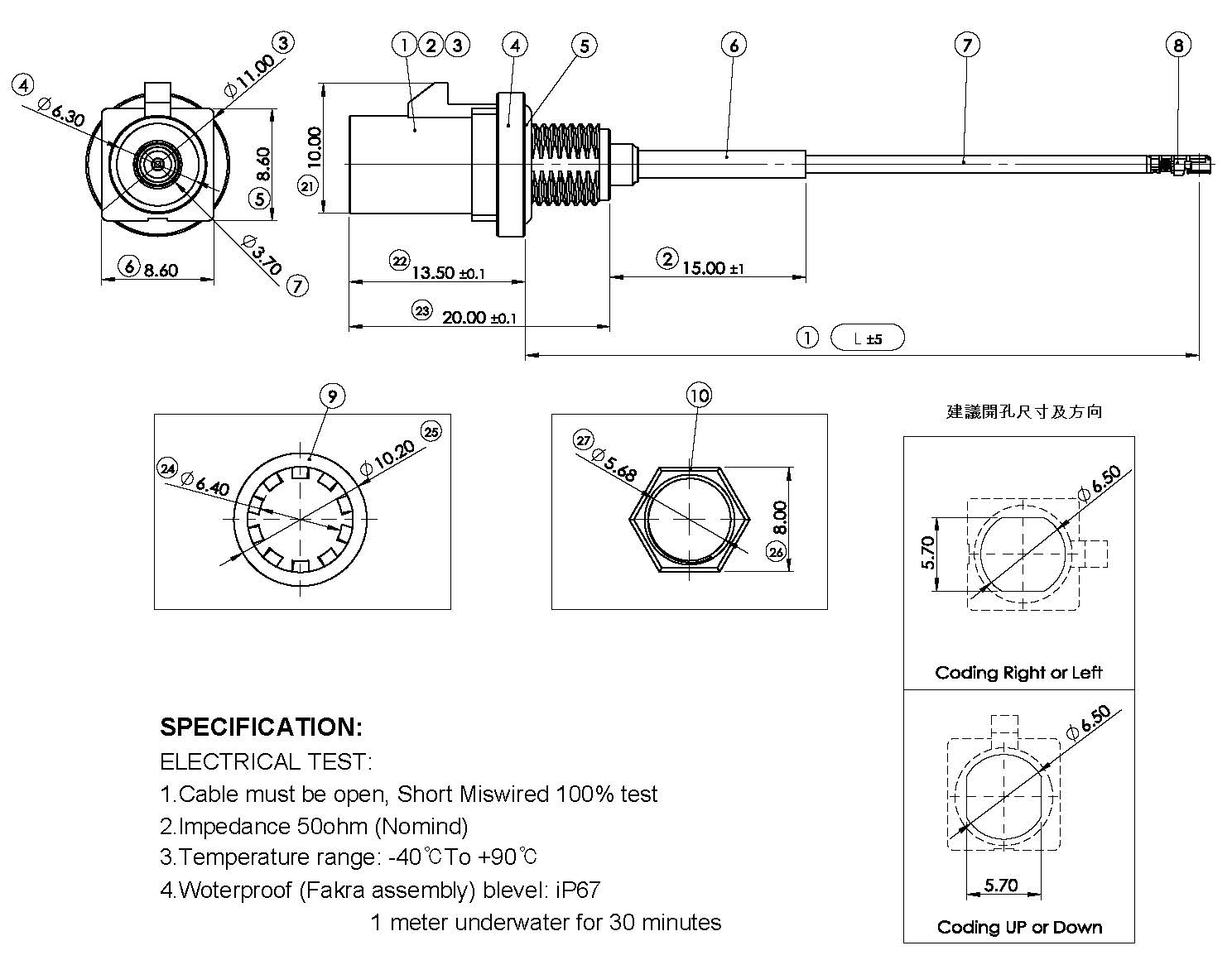 KLS1-FAKRA-CABLE-11-A/A-1-RG174-L50MM