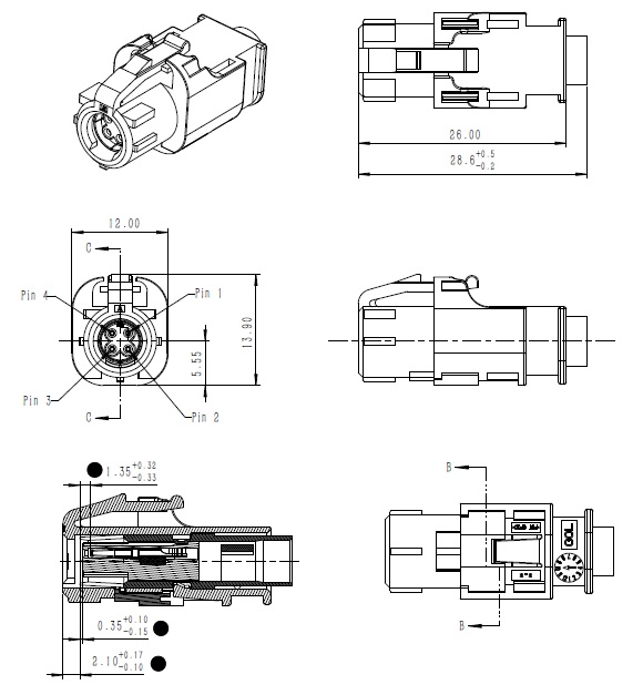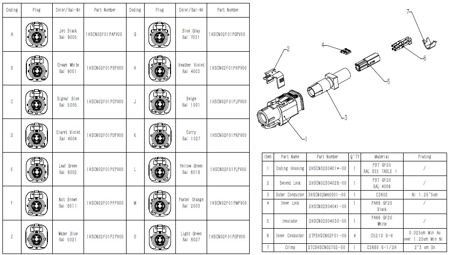 HSD FAKRA connector plug spring pin for crimping 4 pins