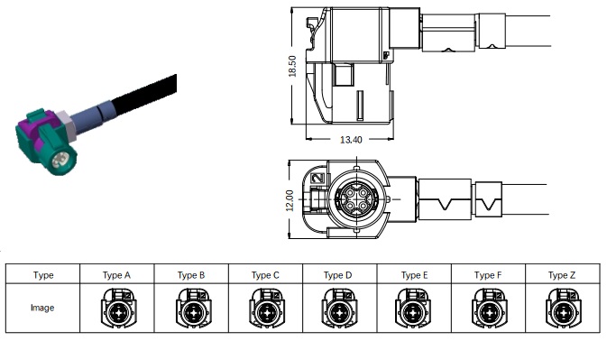 HSD FAKRA connector jack,right angle spring pin for crimping 4+2 pins