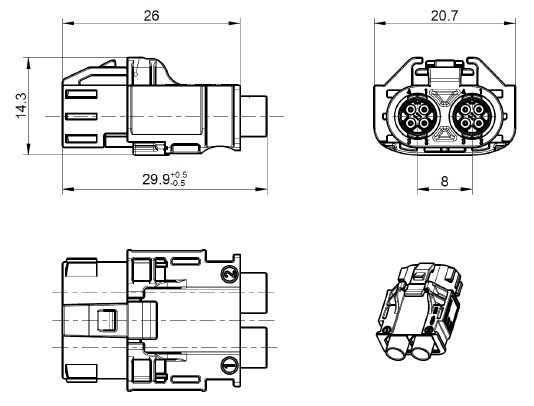 HSD FAKRA connector plug,right angle 4+4 pins