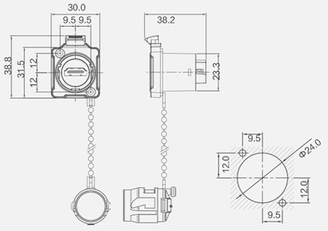 M24 Push pull Waterproof circular HDMI connectors,IP67
