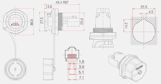 M25 Push pull Waterproof RJ45 connectors,IP67