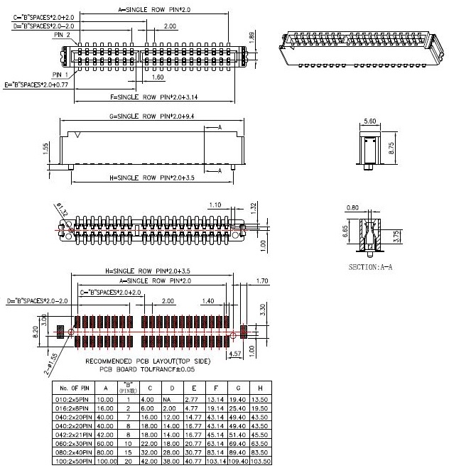 XX-No.of 10-100pin VM-Vertical SMT Pin Plating: G1U=Gold 1u" G3U=Gold 3u" G30U=Gold 30u"
