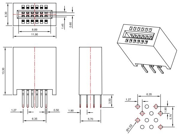 Plating: G1U=Gold 1u" G3U=Gold 3u" G30U=Gold 30u"
